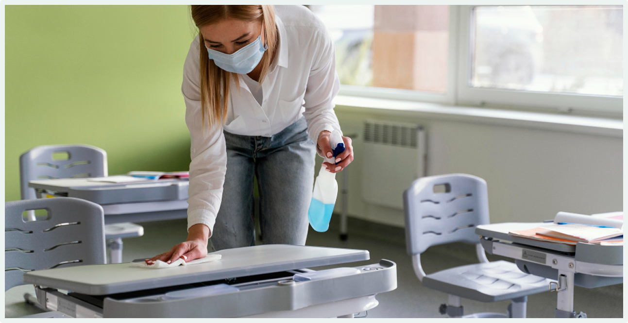 - Classroom Cleaning – Dusting, sanitizing desks & chairs, whiteboards, and teaching equipment.